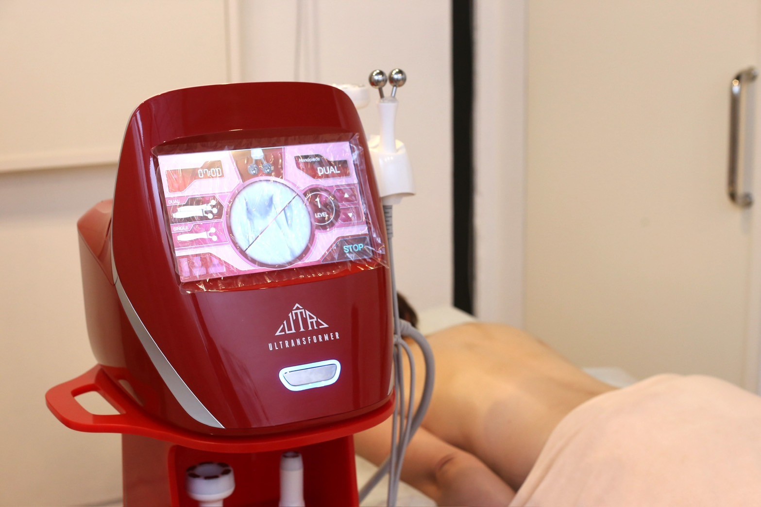 最新の痩身マシン(ウルトランスフォーマー)を用い、筋膜リリース・深部加温・リンパ吸引の3ステップで代謝を高め、脂肪燃焼をサポートします。